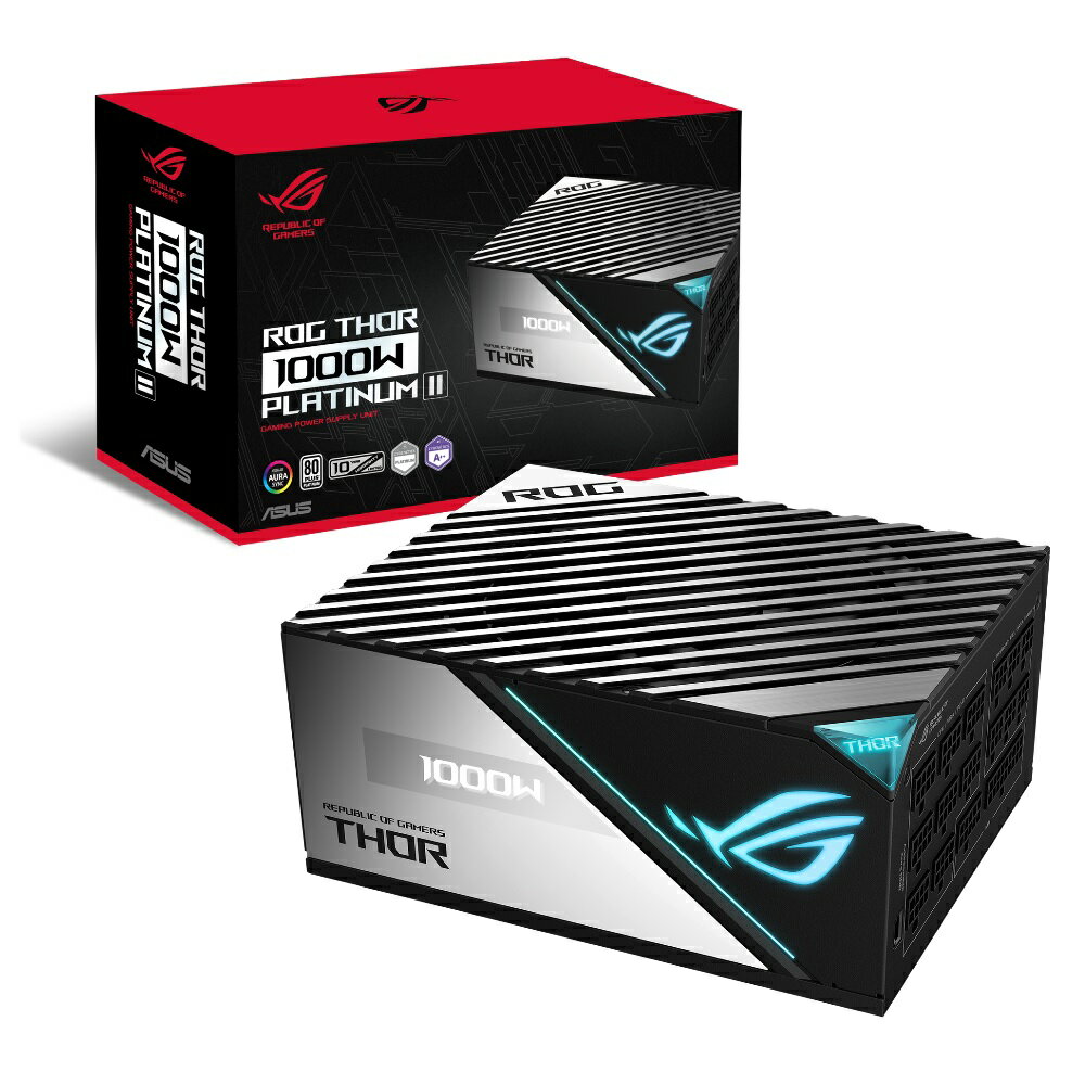 電源ユニット「ROG-THOR-1000P2-GAMING」 80PLUS PLATINUM認証を取得した1000Wの静音電源ユニット製造/販売ASUS製品情報電源ユニット「ROG-THOR-1000P2-GAMING」価格比較ここをクリック 消費電力をリアルタイムで表示する有機ELディスプレーを側面に備える電源ユニットの新製品。Cybenetics Labsによる静音性を検証する電源認証プログラムで、最高評価の「Lambda A++」を獲得しているという。本体はROGデザインのヒートシンクを搭載するほか、鏡面仕上げのサイドパネル備える豪華なデザインだ。内部には、通常の2倍のサイズという「ROG Heatsink」を内蔵するほか、「Axial-tech Fan」やセミファンレス機能「0dB Technology」をサポート。+12Vはシングルレーン設計で最高出力83A(996W)。ケーブルはフルモジュラー方式となっている。サイズは150(W)×190(D)×86(H)mm、製品保証は10年間(OLEDディスプレーとRGB LEDは3年保証)となっている。