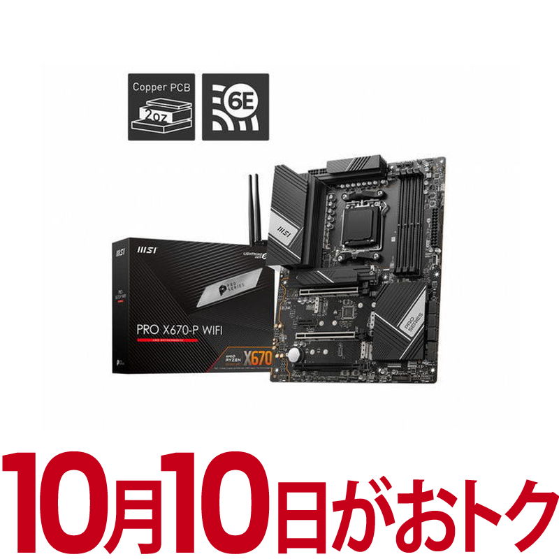マザーボード「PRO X670-P WIFI」 電源回路は80A SPSによる14+2+1フェーズで、ヒートシンクはシンプルながら2.5ギガビットLANやWi-Fi 6Eを備えている。なお、PCI Express(5.0) x16はない。製造/販売MSI製品情報マザーボード「PRO X670-P WIFI」価格比較ここをクリック 主なスペックは、拡張スロットがPCI Express(4.0) x16×1、PCI Express(4.0) x4×1(x16形状)、PCI Express(4.0) x2×1(x16形状)、PCI Express(3.0) x1×1。メモリーは、DDR5 DIMM×4(DDR5-6600+(OC)、最大128GB)。オンボードインターフェースとして、2.5ギガビットLAN(Realtek)、Wi-Fi 6E (IEEE 802.11a/b/g/n/ac/ax)+Bluetooth 5.2 (AMD)、サウンド(Realtek ALC4080 8CH HD Audio)、M.2×4、SATA3.0×6、USB 3.2 Gen2×1、USB 3.1 Gen2×4、USB 3.0×8、USB 2.0×4などを装備。グラフィックス出力機能としてUSB Type-C、HDMI 2.1、DisplayPort 1.4を備える。