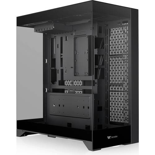 PCケース「CTE E550 TG」シリーズ 3パターンのビデオカード配置にも対応製造/販売Thermaltake製品情報PCケース「CTE E550 TG」シリーズ価格比較ここをクリック 3面強化ガラスパネルを備えるピラーレスタイプのミドルタワーPCケース。ラインアップは黒、白、グラベルサンドの3色。フロント、左サイド、背面の3箇所に4mm厚の強化ガラスパネルを備えたPCケース。デュアルチャンバー構造により十分な配線スペースを確保するほか、ビデオカードの配置に合わせて回転できる拡張スロット構造を採用している。垂直配置をサポートするブラケットを標準装備。さらに、別売りのライザーケーブルを使用することで、3パターンのビデオカード配置にも対応する。ベイ数は3.5インチシャドウベイ×2または3.5インチシャドウベイ×1、2.5インチシャドウベイ×2。CPUクーラーが高さ166mm、ビデオカードが長さ415mm(ラジエーター搭載時)443.8mm(ラジエーター非搭載時)、電源ユニットが奥行き220mmまで対応。本体サイズは270(W)×513(D)×558.5(H)mm、重量は14.5kgとなる。