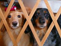 お花を植えている間、クッキーと文ちゃんは玄関の柵の間からジーーーー・・(笑)