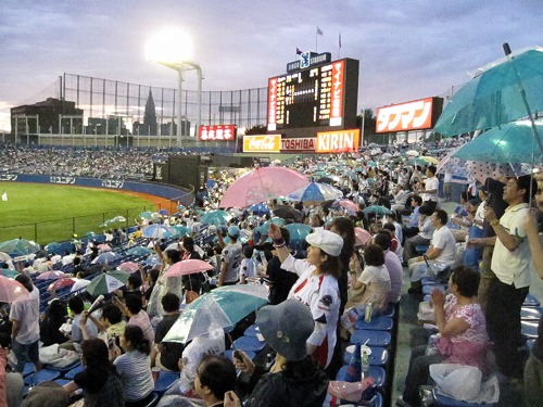 行って来ました神宮球場ツアー!ヤクルトvs中日目が離せない乱打戦で、結局ゲームセットまで・・・勝った!!のはv(*'-^*)bぶいっ♪だけど、、ピッチャー悪すぎ~(汗)こんな試合じゃ、もたないよぉ・・よく貯金が10もあるヽ(*゜O゜)ノ スゴイッ!!!昨日のメンバーは、ヘルパーKさん、Mさん、ぱじーらとカミさん、現地で訪看Mさんの5人。バンザーーイがたくさんでビニール傘乱舞!そういう意味では楽しかった。今後は・・・・・超不安( ̄_ ̄|||) どよ~ん でも、ボールパークはいいねぇ♪雨がパラパラの天候だったけれど、野球は屋外ね!そういや、仙台のKスタ宮城、楽天vsロッテでALS患者が始球式をやったらしい。野村監督の意向ですって。やるじゃん!ノムさん!チームは8連敗ですが・・・_| ̄|○始球式かぁ、、いいなぁ~~~。。。