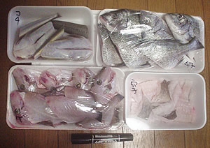 届いてびっくり~!一杯入ってるよ~!鍋セットなので、加工済みで~す。左上から右に、コチ3尾・チヌ(黒鯛)3尾・ハゲ(カワハギ)5尾・穴子1パック。新鮮そうだったから、まずはチヌの尻尾の方を刺身に。これが旨いっ!コチとハゲ3尾を鍋で。骨が多くてちょいと食べにくい。とはいえ、コチは高級魚、ありがた~くいただきました。翌日、穴子を蒲焼にして穴子丼。これは絶品っ!かなり身が太くてプリプリだった。あとはハゲ2尾を煮付けに、チヌ残りを塩焼きに。更に残ったチヌ塩焼きで、鯛めしを作った。3日間も魚尽くしで堪能したよ~。今回の大ヒットは、なんといっても「穴子」!今まで食べた穴子の中で、一番旨かった!注文してたのが、この福袋↓【送料無料】尾道地魚鍋セット1980円お試し福袋セット【新規開店セール1222】 何が届くかわからないけどね…。 お刺身など、他の調理で目一杯食べたい時はこちらがオススメ!同じく1980円送料無料の尾道漁港とれとれ便! 別のショップ【旬のさかな】で2000円相当→1500円送料無料ってのもあるよ。