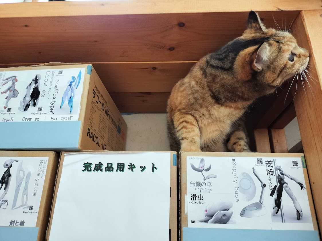 クンクン、ニオイを嗅いで作業着に猫キックをしていました。