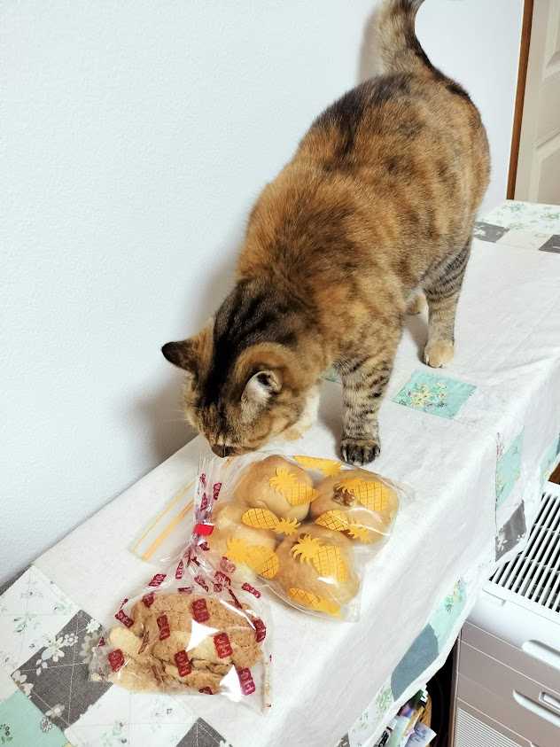 Nさんにいただいた手作りパンを食べたそうなマリ