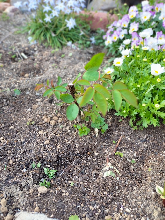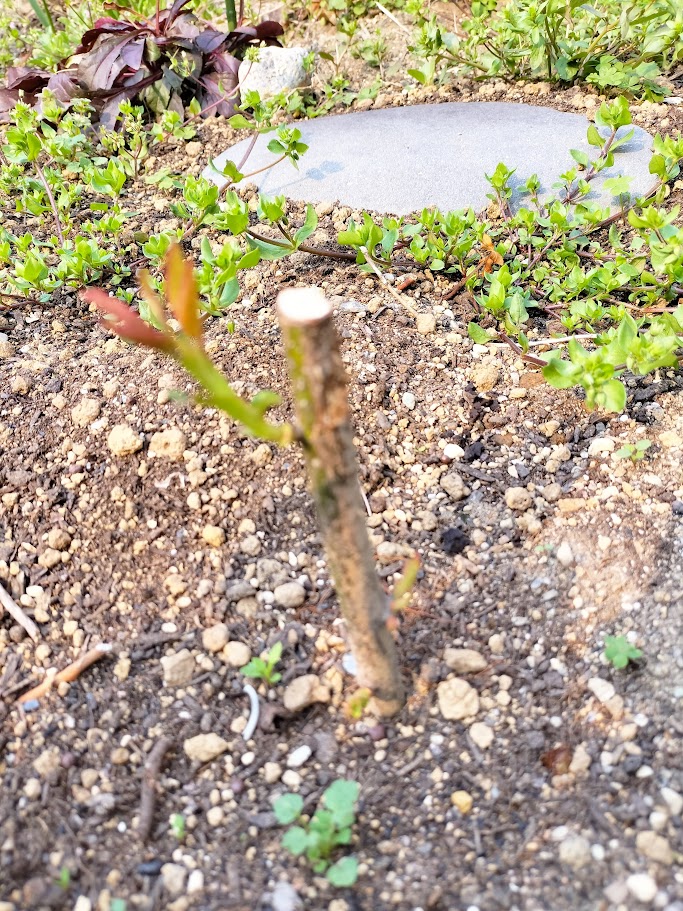 冬に選定したバラの枝を土に挿したら芽が出てきてびっくり!