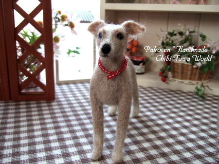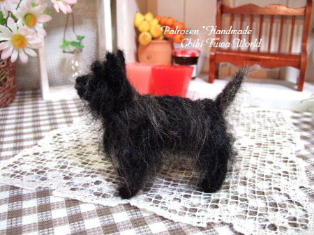 完成しました(^^)サイズは約15センチ前後。中はしっかりと、外観もあまり柔らかくならないように仕上げてます。テリアちゃんですもんね♪ちょっと上目使いのやんちゃなコに仕上げてます(笑)ウチのコにしようか散々迷いましたが、最近ちっとも出品出来てないので、出品することにしました。只今、某オークションにて出品中♪見かけましたらよろしくです(*⌒-⌒*)