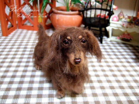 ショップ用の作品は、オーダーと平行作業しています^^今回はリクエストの一番多かったM・ダックスフンド(チョコ/タン)ちゃんを制作しました。ただいまオークションにて出品中です。たぶん毎回書いていると思いますが(^o^;ヾ以前ダックス専門犬舎をやっていたので、ダックスはとても思い入れ深い犬種なのです。今はミニチュアが主流になっていますが、わたしが始めた頃はミニチュアより大きいスタンダードが一般的でした。しかもウチの系統は大型で、体重が12~14Kgくらいあり、ひょうきんな顔がとっても愛らしかったです(^^)時間を作って、わたしが愛した犬たちもメモリアルドッグとして蘇らせたいです(T∀T)