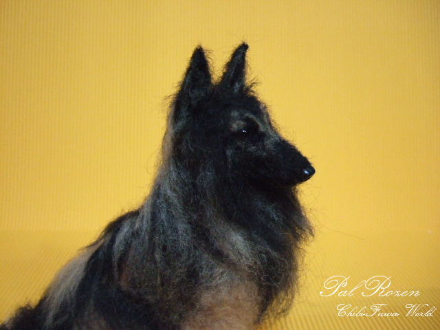 M様ご依頼のわんこは全部で3体。先日のボーダー・コリーちゃん、↑のタービュレン君と、あとオーストラリアン・ケルピーちゃんです。タービュレンは以前に1体制作しましたが、グレー&ブラックで、この仔とは毛色が違うんですね。タービュレン飼ってる方からコメント頂いたのですが、↑のカラーって珍しいんだそうです(^^)サイズは頭まで約16cm。2度ほど手直しして完成しました。子供の頃、アストロと言う名のシェパードを飼ってました。飼うのは大変ですが、大きなわんこに憧れますね~(^^)カッコイイし♪あ、数年前にはフラットコーテッドレトリバーを飼ってましたよ。ラトリィと言う名で、とっても頭の良い仔でした。レトリバーって穏やかで優しいし、何でもくわえるのが好きなんですね。わたしが帰宅すると、ラトは自分の近くにある物をサッとくわえてしっぽをフリフリして出迎えてくれました(笑)なつかしいです。余裕が出来れば、自分ちにいた愛犬たちも制作したいですね。さぁ、ラストのケルピーちゃん、今日もちくちく制作しますよ~