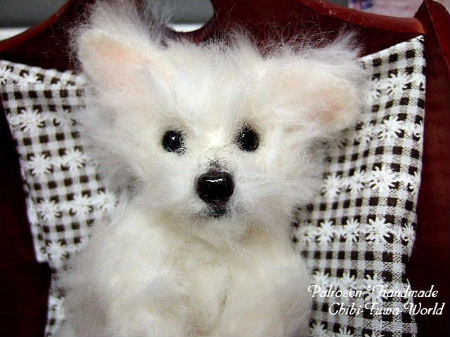 やんちゃで可愛いマルチーズ君が2体誕生しました(^^)プレゼント用とのご依頼なので、今回ご本人たちはシークレットです。マルチーズは何体もお作りしていますけど、フルコート、サマーカット、オリジナルカット、皆んな個性があって楽しいですね。昔はトップをリボンで結んでる仔が多かったのですけど、最近はテディベア風にカットしてる仔も多くて、パッと見プードルと間違えそうです。でも、コートはほとんどストレートなので、制作する時もファインメリノのみで仕上げています。さらっさらで手触りも良くて、作るほうとしても気持ちいいです^^サイズはどちらも頭まで約13cm。最近は大きくなりがちなので、油断してますとデカくなって困ってしまいます(^^;)根が大雑把なので作品にも出るのか・・・・気をつけないといけません~一時期、「もっと大きく作れないですか?」とのお問合せに、「これ以上(18cmくらい)大きく作るのは自信ありません~」な~んて答えてたのに~(笑)小さくても大きくても皆様にお応えできる作品作り目指して頑張りま~す!
