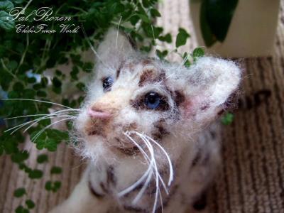 S様ご依頼の猫ちゃん。ソマリのクッキーちゃんのフリースキャットです。クッキーちゃん、ちょっとおデブちゃんだそうで、フリースキャットのほうも、まん丸ぽちゃぽちゃにお作りしました^^サイズは頭まで約18cmです(耳含まず)重さが71gですので、羊毛フェルト作品としてはかなり大きいです。クッキーちゃんは、“いつもわらってて、甘えっこで、やさしいおっとりさん”いつも笑ってるような顔のクッキーちゃんだそうで、“笑い顔、笑い顔”って思いながら作ってました(笑)背中もまん丸。画像で観るより実物のほうがもっとボリュームがあります。相変わらず写真が下手ですね(^o^;ヾ