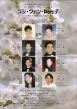 今日はママの演奏会の本番。この数ヶ月、大阪に行ったり、夜遅くまで練習してちょっと我が家も大変でしたが、二人の息子もあまり手がかからなくなったので、本業の歌に一生懸命なママでした。今日は北国は青空。そして太陽が燦燦と輝く良いお天気です。いろんな出会いがあることはとっても素敵。私もちょっと羨ましい感じがします。コシ・ファン・トゥッテ(女は皆こうしたも)っていうモーツアルトが作ったオペラ。私も楽しみにしてま~す。