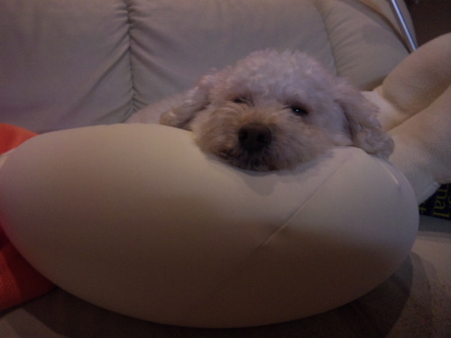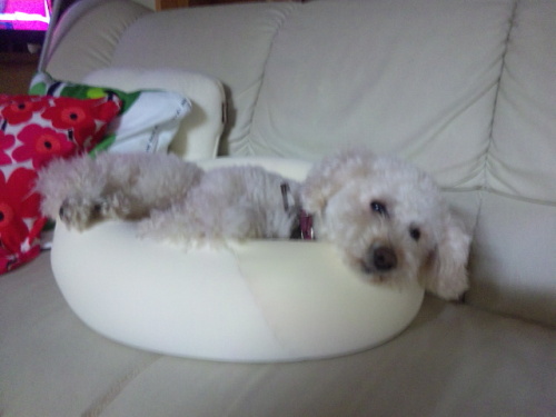 スキー場で尻 負傷()日常生活に 若干 支障アリ取り合えず ご報告まで わんこはトリミングして小ざっぱりして来ましたトリミングの後で お疲れのわんこ