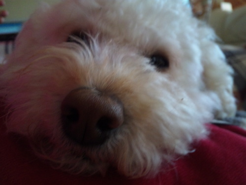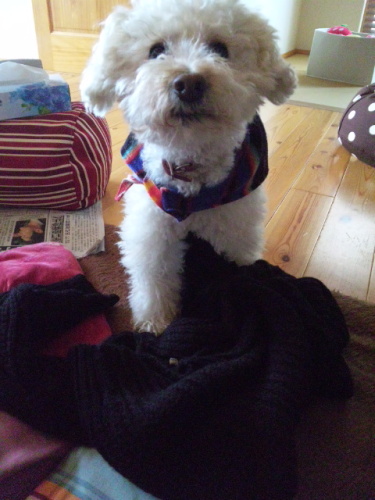 朝っぱらからいつもより かなり 濃い目に作った 超特濃ミロひっくり返して 床にぶちまける 床 スリッパ ズボン ドロドロ(何故か 今日に限って 空いてた)引き出しの中も ミロまみれ想像を超える 大惨事 もはやすでに ヘトヘト~ わんこはちょっと そこに置いた 私のセーターに 目やにの付いた顔を こすり付けまくり それ 着てくつもりなんですけど~ 病院行って 目薬さしてもらって目やにも取ってもらわねば