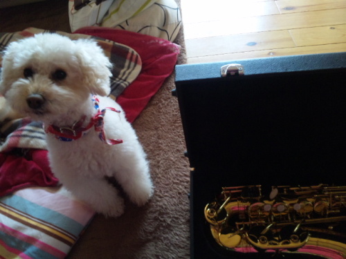 そう言えば昨日 サックス教室の帰りにおかんトコ寄って サックス吹いてみたら 実家の居候わんこが サックスの演奏に合わせて 「 ワゥ~ ウォ~ ワォ~ン 」 2,3曲 そんな風に鳴いてその後 ピタリとやらなくなった おかん曰く「 みんなが注目したし照れたんや~ 」 んなわけ ないと思うけど