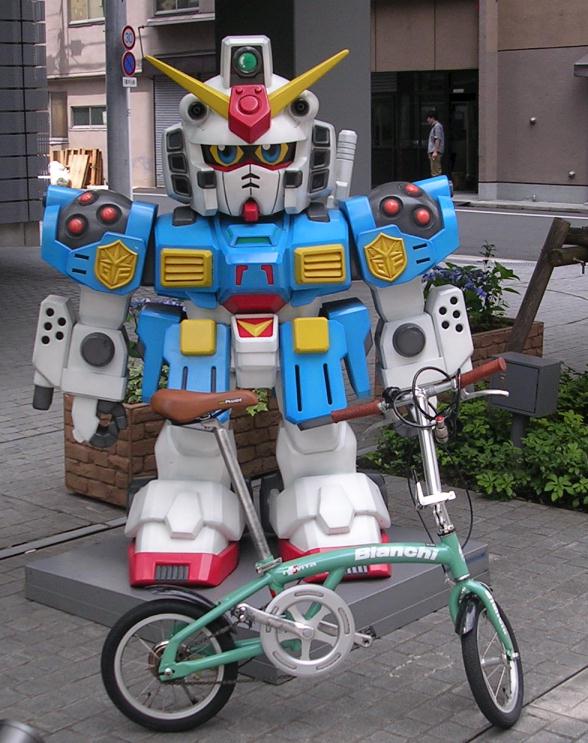シャア専用ザクは発売したけど、ガンダムって売ってなかったよね。(売ってるのかな?)バンダイの本社前で、ガンダムと自転車ノビタと一緒に写真を撮ってきました。