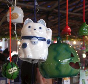 スイカと猫の風鈴が涼しげでいいでしょ。川崎の風鈴市で一番良く撮れた写真です。やはりガラス製品は本当に綺麗なんだけど、撮るのが難しいです。 *** どこでも行くよ ***
