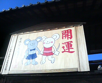 初詣に足高神社に行ってきました。家族揃って行きたい所なのですが、0歳児を人ごみには連れて行けないので一人で家族は家で待機って事で寒い中行ってきました。 恒例のジャンボ絵馬を見て可愛すぎるキャラクターだとは思ったけど?(誰が考えてるんだろ?)我が家は、干支のお守りストラップを全員分買って身に着けて今年も家内安全で行きますように。お守り根付七福神 布袋\368