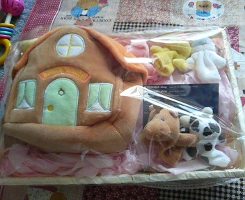 お母さんが、勤務先に内祝いを返しに行くということで、「生後二ヶ月の娘と、留守番中です。」さてどうなることやら。今まではスーパーに行く程度の留守番でしたので、紙おむつの交換ぐらいでしたがどうなるんでしょうか。ちょっと時間がかかると思いますし。 過去の数回の短時間の留守番だと、玄関の前で二人で待ってたことがほとんどだったのですが、、、、早く帰ってこないか二人で泣いてました。現在は、眠ってます。 さて起きてから今日お祝いが届いた指人形で遊びますか。ミルクは作るかな。泣いたらどうするかな。。。。(オロオロ)写真は、家の形のバッグと牛さんとかの指人形です。kids foret 指人形(アニマル)300円