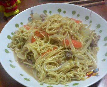焼きラーメンを食べました。 以外にじとーっとした感じがよかったですよ。焼きそばとは違う感じがいいんですかね?博多屋台風焼きラーメン醤油とんこつ\315