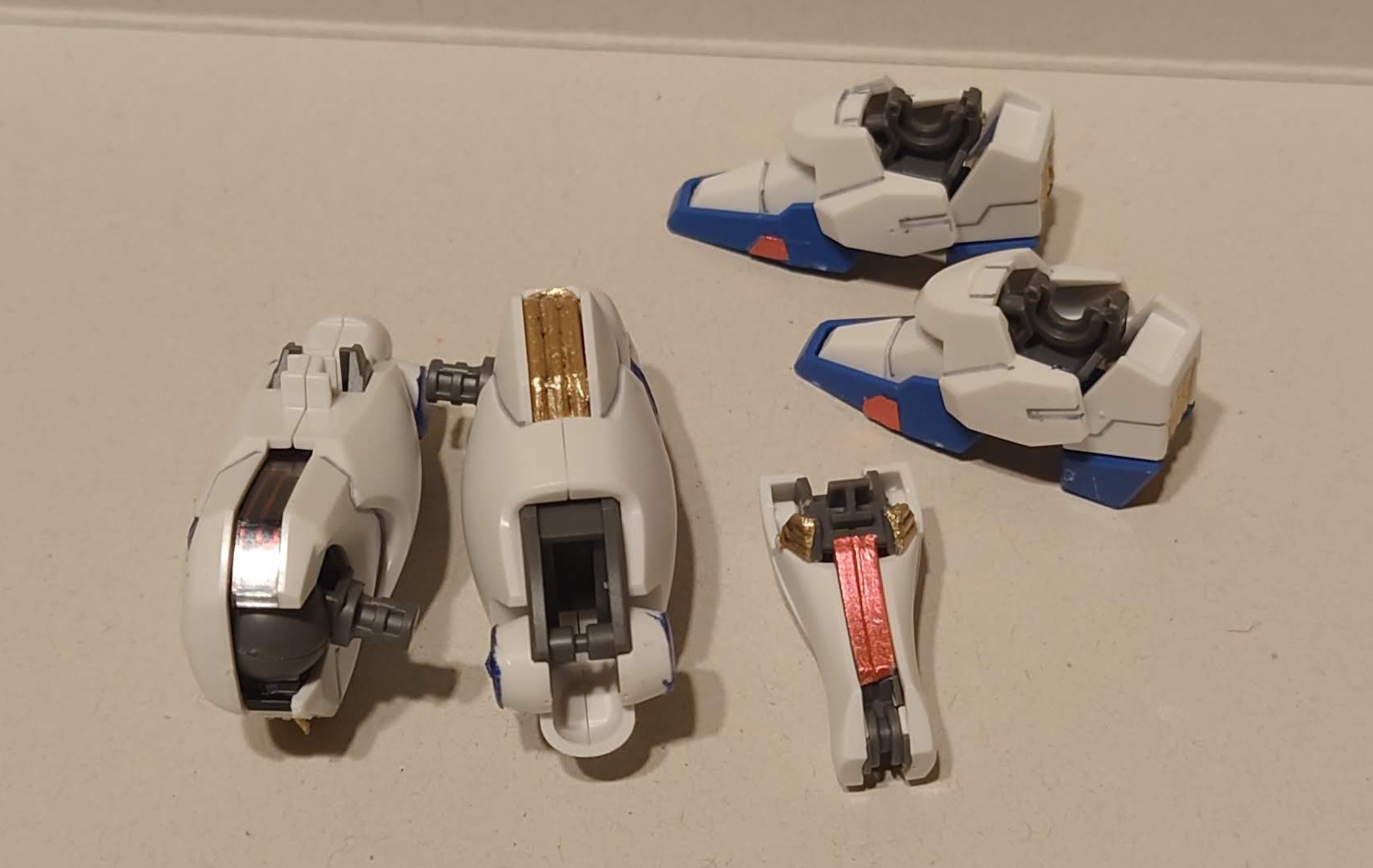 中古で購入した「ガンダムエアリアル改修型」を購入したのでボチボチと作成していきます。少しづつノンビリ作っていきます。HG 1/144 (019) ガンダムエアリアル(改修型)【新品】 機動戦士ガンダム水星の魔女 ガンプラ プラモデル 【宅配便のみ】まずは、つま先部分ですね。少し赤いアクセントはテープで入れました。パイプ関係はゴールドで飾りました。もう一つは、かかと部分に関してもゴールドをあしらっていきます。かかとの青色のポイントも飾っていきます。ノンビリとテープを貼っていきます。カッターの刃の反対側で縁をなぞっていきます。また、スジボリの墨入れをしていきます。かかとのサポートも墨入れをしていきます。スジボリまではやってないんですよね。現状ある筋に対して墨入れするだけです。今回は。。。センスが結構要求されるんですよね。