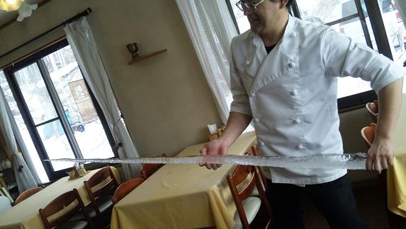 こんにちは!2012年、ブログ初更新の、スタッフ兼山です!今年もよろしくお願い致します(^O^)こちらの写真、オーナーが持っているのは、なんと「つらら」です!窓からの収穫(^_^;)1.5mくらいでしょうか。チェックアウト前のお客様とミニ写真撮影会♪これからますます成長していくつららを観察するのが、毎年この季節の楽しみのひとつでもあります。またアップしますのでお楽しみに☆mori子