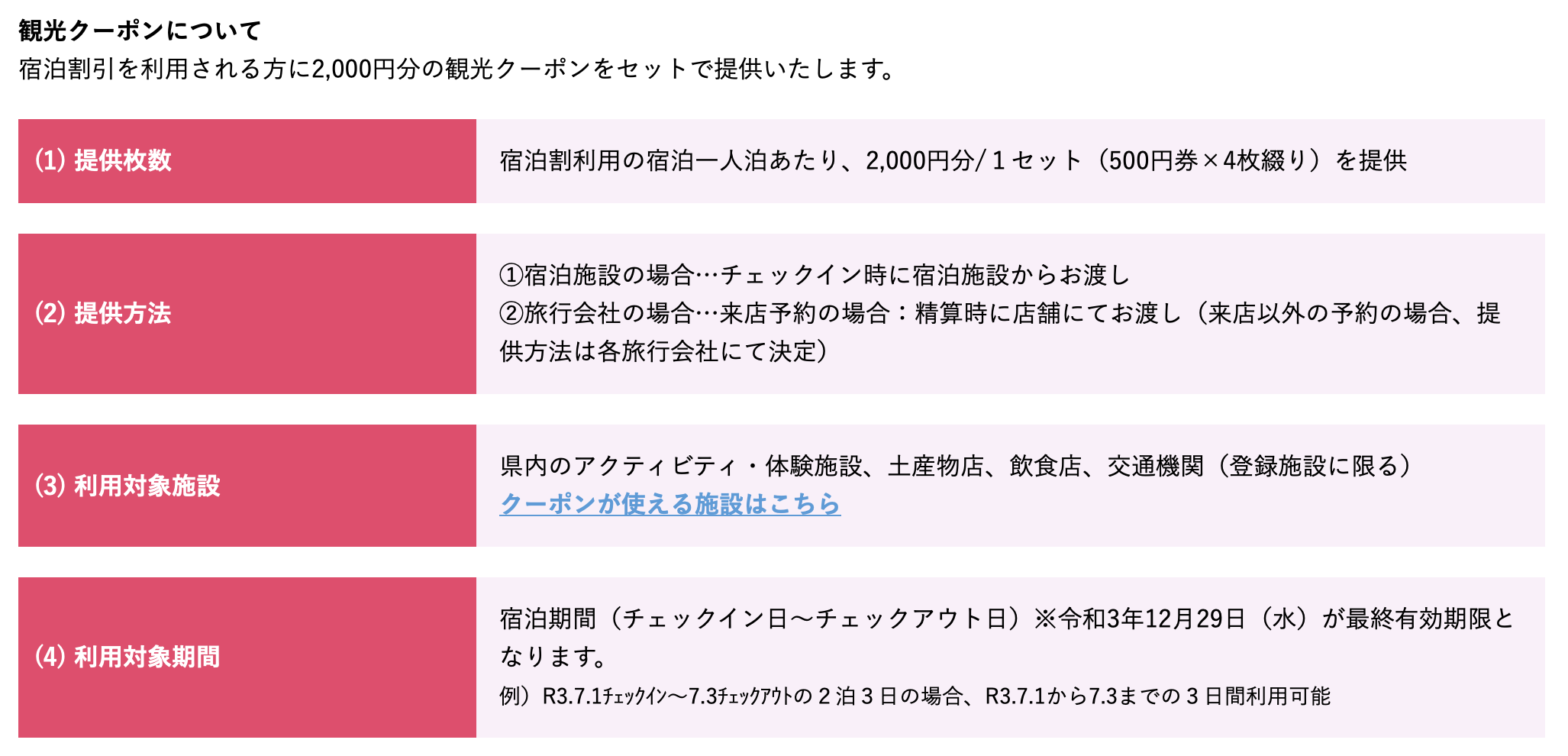 続いて、観光クーポンとして1人あたり2,000円を当館から発行。
