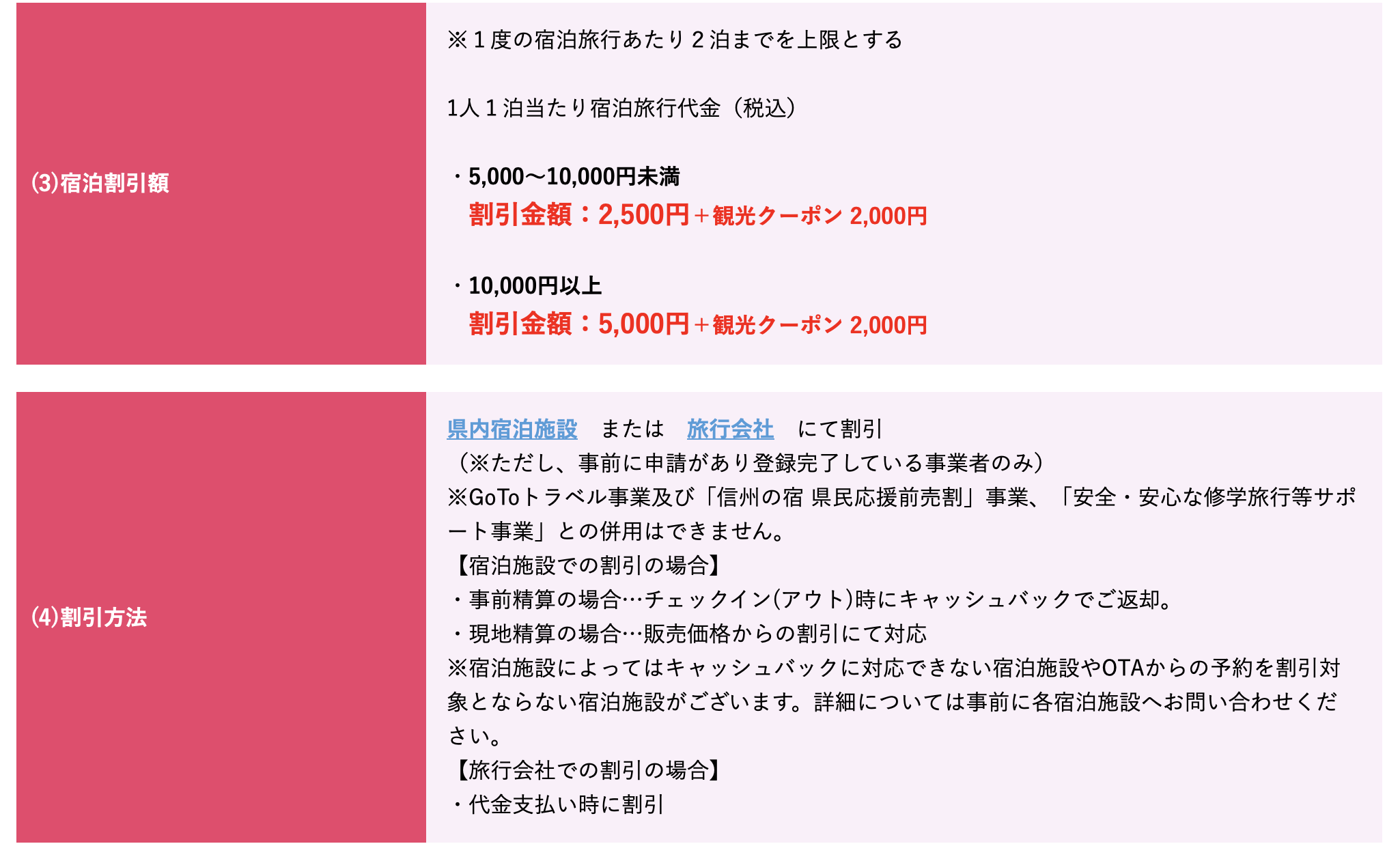 詳しくは、「信州割SPECIAL」で検索していただき、長野県のホームページをご覧ください。