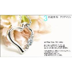 シアーズ E1491-03 誕生石×天然ダイヤ オープンハートネックレス 3月アクアマリン