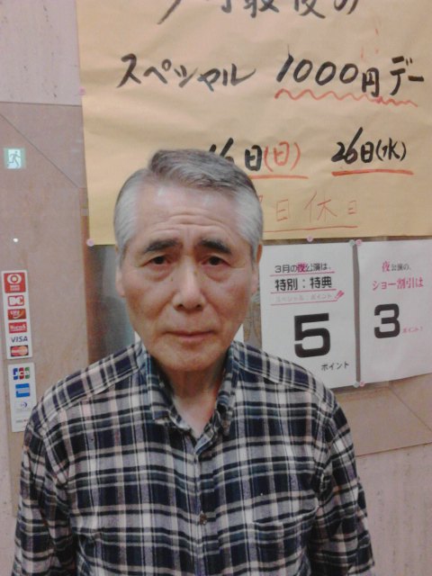 大衆劇場の1階に喫茶鈴蘭がある。鈴蘭は劇場の待合室にもなっているので開演前には劇場のお客様方で賑わう。劇場はお客様方で支えられていると同時にボランティアで協力してくれる友人たちにも支えられている。その友人の1人が喫茶鈴蘭の売り上げを上げてあげようと考え、シニア婚活を企画してくれた。50歳以上75歳までの男女を対象に10月19日午後3時〜午後5時半まで3千円会費で開催してくれることになったのである。となれば喫茶店内にもご案内のチラシを各テーブルに置かざるを得ない。芝居見物に来られるお客様のほとんどは年齢的に対象者になるので勢いシニア婚活のことが話題になる。「支配人は当然参加するのでしょう?」何度も質問を受ける。「いや〜僕は参加しないんですよ」「なんでやねん?」突っ込んだ質問が飛んで来ることもしばしば。「僕はダメなんです。だけど多分フーセンの寅さんは参加すると思いますけど」「そやかて寅さん貧乏で金持ってないやろ?」極めて露骨な質問も飛び出し、ひやひやすることもある。「支配人参加せんてどうしてダメなんよ〜?若い彼女でもいるんかいな?」とうとう答えに窮して僕は答えた。「僕は前立腺ガンの手術を受けたからダメなんです」答えた途端みんな大爆笑!「年寄り同士そんなもん関係あらへん、あらへん」ちゃんと皆さん意味分かってるんだあ〜?ぺペンペンペン(読者の皆さん、ありがとう) 〓〓〓〓〓〓〓〓〓〓〓〓〓〓〓〓〓〓〓(一度大衆演劇をご観劇下さい。支配人 旅田卓宗)〓〓〓〓〓〓〓〓〓〓〓〓〓〓〓〓〓〓〓〓〓〓〓 【人生無料相談所開設】〓〓〓〓〓〓〓〓〓〓〓〓〓〓〓〓〓〓〓〓〓〓〓和歌山市に住む元和歌山市長の旅田卓宗です。選挙に当選したり落選したり、借金地獄に落ち込んだり病気になったり、失恋も数知れず経験したり。あげくは逮捕され刑務所生活も経験しました。正に人生浮いたり沈んだり。波瀾万丈の人生を歩んで来ました。何の力もない私ですが、お役になれる事があれば、何でも、ご相談頂ければ幸いです。毎日喫茶『鈴蘭』にいますから。予め以下の携帯電話に御連絡下さればありがたいです。私の携帯電話番号は07052684040です。〓〓〓〓〓〓〓〓〓〓〓〓〓〓〓〓〓〓〓〓〓〓〓