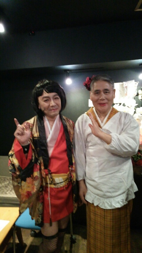 〓〓〓〓〓〓〓〓〓〓〓〓〓〓〓〓〓〓〓( 1月31日 オカマデー大成功 )〓〓〓〓〓〓〓〓〓〓〓〓〓〓〓〓〓〓〓【旅田卓宗の人生相談カラオケ喫茶】〓〓〓〓〓〓〓〓〓〓〓〓〓〓〓〓〓〓〓何でもご相談下さい。相談料は無料です。〓〓〓〓〓〓〓〓〓〓〓〓〓〓〓〓〓〓〓( カラオケ喫茶 伊藤部屋パート2 ) (飲料以外の食料品持ち込みOK)午後2時〜8時半迄営業・日曜、祝日営業 定休日は水曜日和歌山市 サンプラザビルワンあろち2階〓〓〓〓〓〓〓〓〓〓〓〓〓〓〓〓〓〓〓毎週木曜日 特別営業午後2時〜10時〓〓〓〓〓〓〓〓〓〓〓〓〓〓〓〓〓〓〓◆◆◆◆◆◆◆◆◆◆◆◆◆◆◆◆◆◆◆◆◆◆◆◆◆◆ 今日、日曜も営業しま〜す!◆◆◆◆◆◆◆◆◆◆◆◆◆◆◆◆◆◆◆◆◆◆◆◆◆◆一大決心をして決行した「カラオケ喫茶」のオカマデーは大成功に終わった。1日の売り上げ目標達成はもちろんのこと、今月の売り上げ目標も軽く突破することができた。県外からブログを見たと言って駆け付けてくれた人もあれば、ご近所の人達も来て頂き開店早々満席になったのはオープンの日以来だ。応援でオカマ姿で協力してくれた友人の裏橋さん扮する裏奴姐さんは超ミニスカートの妖艶な美人に変身し、お客さんから「見るとゾクッとするね!」と大好評。僕の卓奴姐さんの方は「あれ~気持ち悪い~!」とイマイチの反応。それもその筈、座って話し込んでいると、いつの間にやら脚の股が開いて赤いおこしが丸見え、畳の間のお客さんに挨拶する時には足が痛いので胡座(あぐら)を組んで開き直り。色気も何にもなし!だから仕様がない。ともかく友人の皆さんに助けて頂き今月も乗り切ることができた。皆さん、ありがとう!ペペンペンペン〓〓〓〓〓〓〓〓〓〓〓〓〓〓〓〓〓〓〓 人生相談カラオケ喫茶料金表 〓〓〓〓〓〓〓〓〓〓〓〓〓〓〓〓〓〓〓【 歌い放題1千円(時間制限なし)】 ワンドリンク付、アルコール(OK)ーーーーーーーーーーーーーーーーーーー【歌い放題、飲み放題2千円(2時間)】 ソフトドリンク・アルコール(OK)但しビールは発泡酒5本限定、他は(OK)ーーーーーーーーーーーーーーーーーーー ご予約は以下へご連絡下さい。 07052684040 旅田卓宗〓〓〓〓〓〓〓〓〓〓〓〓〓〓〓〓〓〓〓 追加 ドリンクドリンク300円・アルコール500円 〓〓〓〓〓〓〓〓〓〓〓〓〓〓〓〓〓〓〓【断糖食は血糖値を下げますが危険性もありますので常に医師と相談しましょう】〓〓〓〓〓〓〓〓〓〓〓〓〓〓〓〓〓〓〓