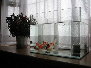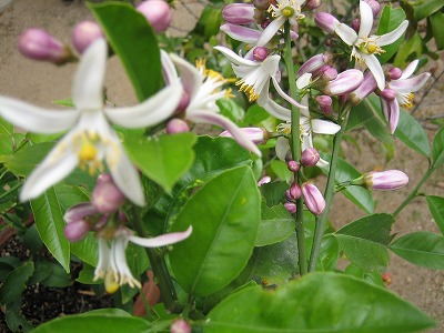 今日はあいにくの曇り空‥‥金魚の水かえをしました金魚も気持ちよさそう 庭にあるレモンの木に花が咲きました パピちゃん登場!
