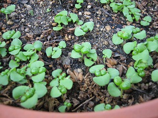5月22日 ふた葉が出た 6月2日 ほん葉が出た 6月20日 もうそろそろ‥‥ 広い場所に植えかえよ~