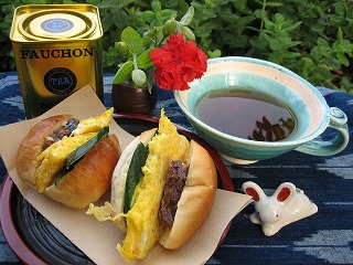たしか冷凍庫にロールパンがあったハムはないけどたまごは冷蔵庫に入ってるしちょっと元気がなくなりかけたきゅうりが1本あるよし! エッグサンドロールを作ろう たまごはだんぜん 焼いたのがおいしいよね!ツナもほしいけど ないものは仕方ない‥‥ え~い 鯖の水煮缶でいいや ってことで はい! できあがり~ 今日の紅茶はフォションのアップルティーパピとミ~に邪魔されてなかなか写せなかったけど写真になると なんか ごちそうっぽくていいねおいしそう いっただきま~す
