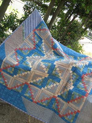 パ ッ チ ワ ー ク ログキャビンのタペストリー 先生に作っていただいたバッグとミニクッション これがわたしのイメージだそうです (?)それは、ど~だかわからないけど気に入ってます!