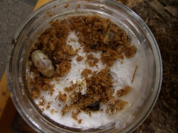 スジブトヒラタ2頭が前蛹になってます。たぶん・・・メスかな???よく見えないので分かりません。どうやら今が蛹化ラッシュのようですね☆←1日1クリックお願いします!