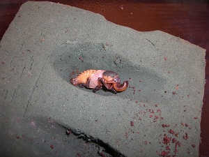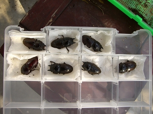 昨日もう1度セットしようと思いヘラクレス・リッキーを同居させたのですが・・・失敗に終わりました。。。中プラケに一緒に入れてパソコンしてたら・・・「ガシャガシャ!!!」何事???ヘラクレスのケースを見ると、、、なんと!!オスがメスを角ではさみ、持ち上げているではありませんか!!!急いで蓋を開け別々にしました。このままセットするか、あきらめるかですね・・・←1日1クリックお願いします!