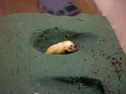 採ってきた幼虫たちを菌糸ビンに入れました。おそらく3頭ともキュウシュウオニだと思います。1♂2♀かな・・・1頭だけ大きいので☆羽化が楽しみです♪一方、謎の幼虫(おそらくハナムグリ系)。プリンカップにカブトマットを詰めて入れました。一体どんなハナムグリになるのかな???あと、パープル系パプキンの産卵セットもしました。今回はいつものマットで♪今度こそ産んでもらわないと・・・←1日1クリックお願いします!