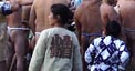 【厳寒の海へ】 ※o―。.☆.。―o※※o―。.☆.。―o※※o―。.☆.。―o※※o―。.☆.。―o※※o―。.☆.。ヨットもいいね~江の島近くまで戻ってきました。もう、海岸には沢山の人たちが集まっていました。何があるかって、この日は『寒中神輿練成大会』の日でした。新成人を祝うとともに、一年間の無事を祈願して、ふんどし姿で神輿を担ぎ、湘南の海へ入っていきます。寒そう~{{ (>_