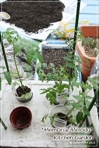 4月22日 曇5本あったミニトマトの苗のうち、3本を水耕栽培で。レッドフルーティ、イエローミミ、オレンジパルチェ、赤、黄、オレンジのミニトマトたち。苗のポットを外してトレーの中で水に浸し簡単に土をほぐせました。土が固い場合はしばらく水に付けておくといいらしいが、いずれにせよなるべく根を傷めないことがポイント。そして、きれに土をすべて落とす必要もないので、適当におとしたところで固定してあげれば大丈夫!ただのプラコップだけど、去年もこれだったしということでかなり適当。とにかく、極力お金を掛けたくないのだ。。。プラコップの底と側面に大きく穴というより切込みを入れ、根が下に垂れるように加工してあります。昨日、作業したのですが、今日、苗の状態を見てみると葉が萎れている様子もなく元気そう。たぶん大丈夫!?やっぱり新しい根が伸びてくるまでちょっと心配になってしまいます。水耕栽培の環境に適した根がこれから伸びてくると思うので、それまでは強い日差しは避けたほうがいいようだ。2、3日で新しい根がどれくらい伸びるのか?とりあえず見守りつつ、根が伸びてくれば一安心ということで、太陽の日差しをいっぱいに浴び、元気に育ってくれるでしょう。水耕栽培用液体肥料・VEGETABLE LIFE A(ベジタブルライフA)【 苗物(野菜) 】 1.チョロギの苗2.カラーピーマン苗3.早生ミョウガ 地掘苗 10株4.トマトベリーガーデン5.ドラゴンフルーツ苗 挿木苗 紅白セットおうちで家庭菜園 菜園プランター栽培セット!深55型野菜作りが簡単にはじめられるセットです!京都園芸広場 【送料無料】緑のカーテンW1800ゴーヤ、アサガオでグリーンカーテンを作ろう!京都園芸広場《 2012/4/21 |記事一覧|2012/4/23 》■家庭菜園 - ベランダで野菜栽培できるかな