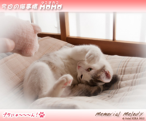 4月20日 この格好はなんじゃ~かわいい~。でも、ブタのぬいぐるみにはねずみのおもちゃほどじゃれないんだけどね。くわえにくいのかな?昨日、部屋の明かりがつけっぱなしでおかしいな~?って、思いつつも、あまり深く考えることもなく消したのですが、今日、明かりをつけた犯人がわかりました!犯人はももだ!干した布団が積み重なって部屋に置いてあったのですが、その上に猫が飛び乗って遊んでいました。今日、その布団の上からジャンプして照明器具から垂れ下がるスイッチの紐に飛びついているじゃありませんか!その様子をみてピーンときましたよ!本人にとってみれば、じゃれて遊んでいるだけなんでしょうが、たまたま紐を引っ張った時にうまいこと明かりがついちゃったようです(笑)とにかくいろいろじゃれて遊ぶんだよ。ランキングに参加してますポチッと応援してくれると、とってもうれしいです!↓にほんブログ村 写真ブログ人気の写真ブログもチェック!写真共有サイト「フォト蔵」◆猫グッズトイレットペーパーホルダー POPPINS☆ニックナック【猫 犬 豚 ネコ ブタ イヌ ティッシュ カバー タオル素材 アニマル柄 メール便対応】ポピンズにトイレットペーパーホルダーカバーが登場!やわらかなスェット素材でやさしい印象♪インテリアに可愛くなじみます☆柄はアップリケと刺繍でやさしい風合い♪価格 924円 (税込) 送料別SHOP:Huit Colline(ユイットコリーヌ)《 2012/4/19 |記事一覧|2012/4/20 》■今日の猫事情