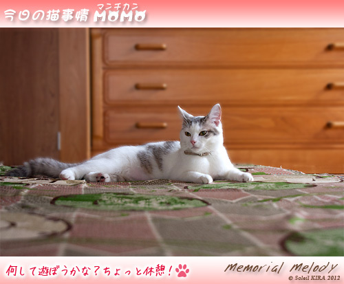 ◆今週の記事(4/15~4/21)【マンチカンももちゃん 今日の猫事情】・今日、毛玉を吐いたみたい。(2012.4.15)・ブタちゃんとにらめっこ!(2012.4.16)・猫ってかくれんぼ大好きだよね。(2012.4.17)・2本足で立ってみた!洋服カバーにじゃれてる(2012.4.18)・押入れ猫 ここはなんだニャン?はじめてだニャン!(2012.4.19)・ブタちゃんにポーズ!(2012.4.20)・生後7ヶ月が過ぎ、体重は?(2012.4.21)【猫系 ニュース・コラム】・おもしろ猫グッズ 「にゃんこ鍋パズル みけねこ」 鍋を実際に火にかけないでください。(笑)(2012.4.17)【家庭菜園】・ミニトマトの苗が届きました!(ベランダ菜園)(2012.4.18)・ミニトマトの苗を丸プランターとペットボトル?に植え替え (ベランダ菜園)(2012.4.21)【ちょいネタ】・ヨーグルトに何を混ぜますか?ヨーグルトレシプ23個!(2012.4.19)・スマートフォンピカピカ!スマホコーティング(デバイスネット) プッシュして拭くだけフッ素コーティング、指紋の付着を軽減 …(2012.4.20)【おでかけイベント情報 祭り・花の名所】・池田・熊野の長藤まつり(静岡県磐田市)/東光寺の長藤(静岡県牧之原市)(2012.4.15)・善光寺花回廊 ながの花フェスタ2012/鬼無里水芭蕉まつり(長野県長野市)| おでかけイベント情報・観光スポット(2012.4.16)・弓削の火祭り/御崎神社の火まつり(滋賀県)| おでかけイベント情報・観光スポット(2012.4.17)楽天レシピレシピ投稿で毎回50ポイントが貰えるお得なサイト誕生!人気順レシピの検索も、モバイル版もすべて無料で提供中