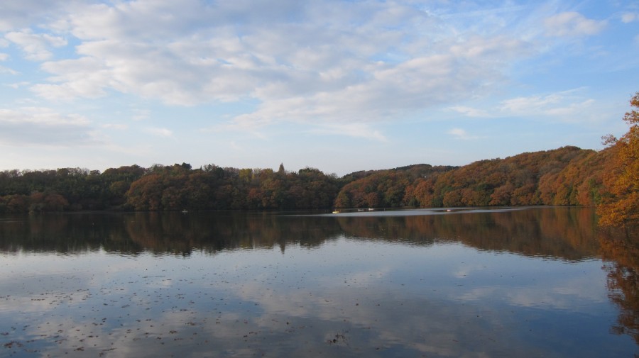 今日の一碧湖が絵画のような色でした。紅葉も始まりなかなかの景色です。この景色を見ていて思い出したのですが、9年くらい前の冬の朝5時頃湖面から小さく白い渦の水蒸気が上がる現象をみました。そのときはカメラを持っていなかったのです。(カメラ付き携帯が出る前)なんという現象かわからないのですが、それはそれは見事な景色でした。