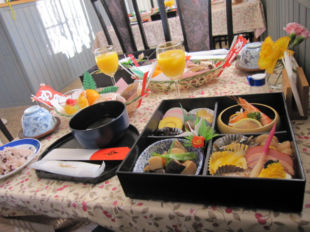 今年もおせち料理を元旦と1月2日の朝食でした。2日間は夜遅く(次の日?)朝は早くからと頑張り途中に日の出が・・パルテールの正面に昇るので写真をとり朝食時間ギリギリに完成お赤飯とお雑煮を運んでほっとしましたもう10年以上していることでもやっぱり年に2回ちょっと緊張します七草粥が過ぎてからのアップになりました。