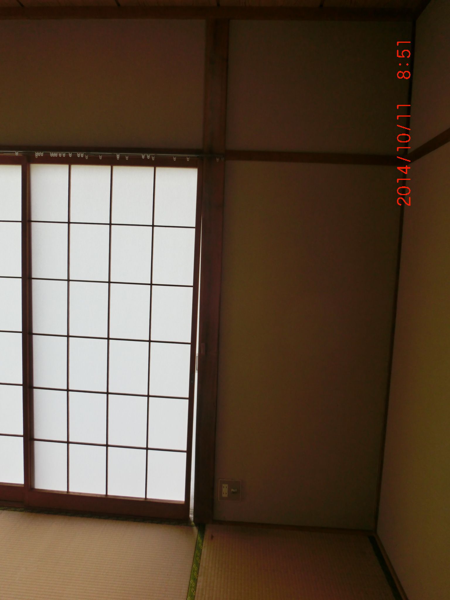 ↑柱としょうじの隙間が上下で違いますよね。傾いています。
