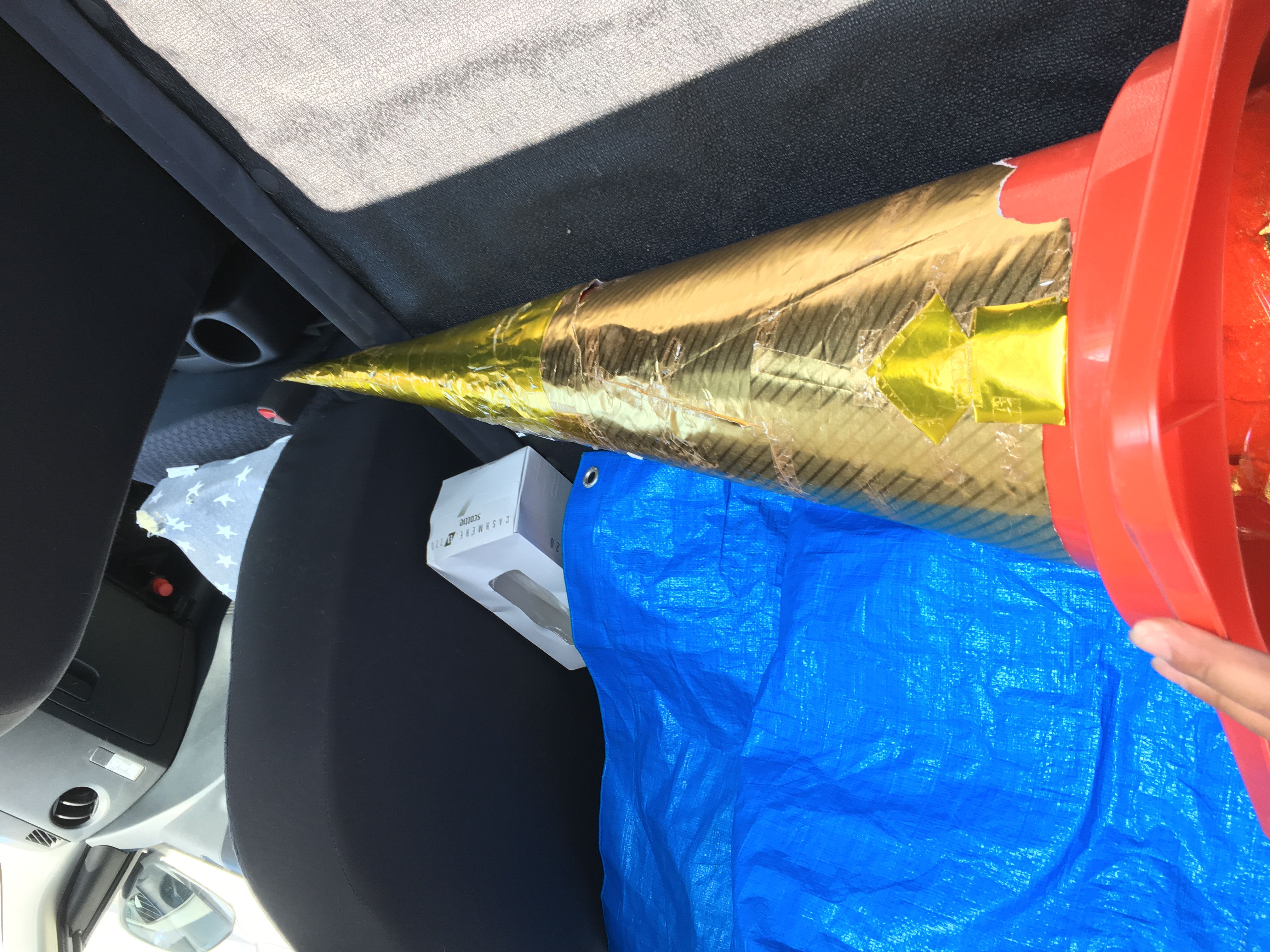 これも写真が反対ですが、ロードコーンに金紙を貼った物が車内にあります。