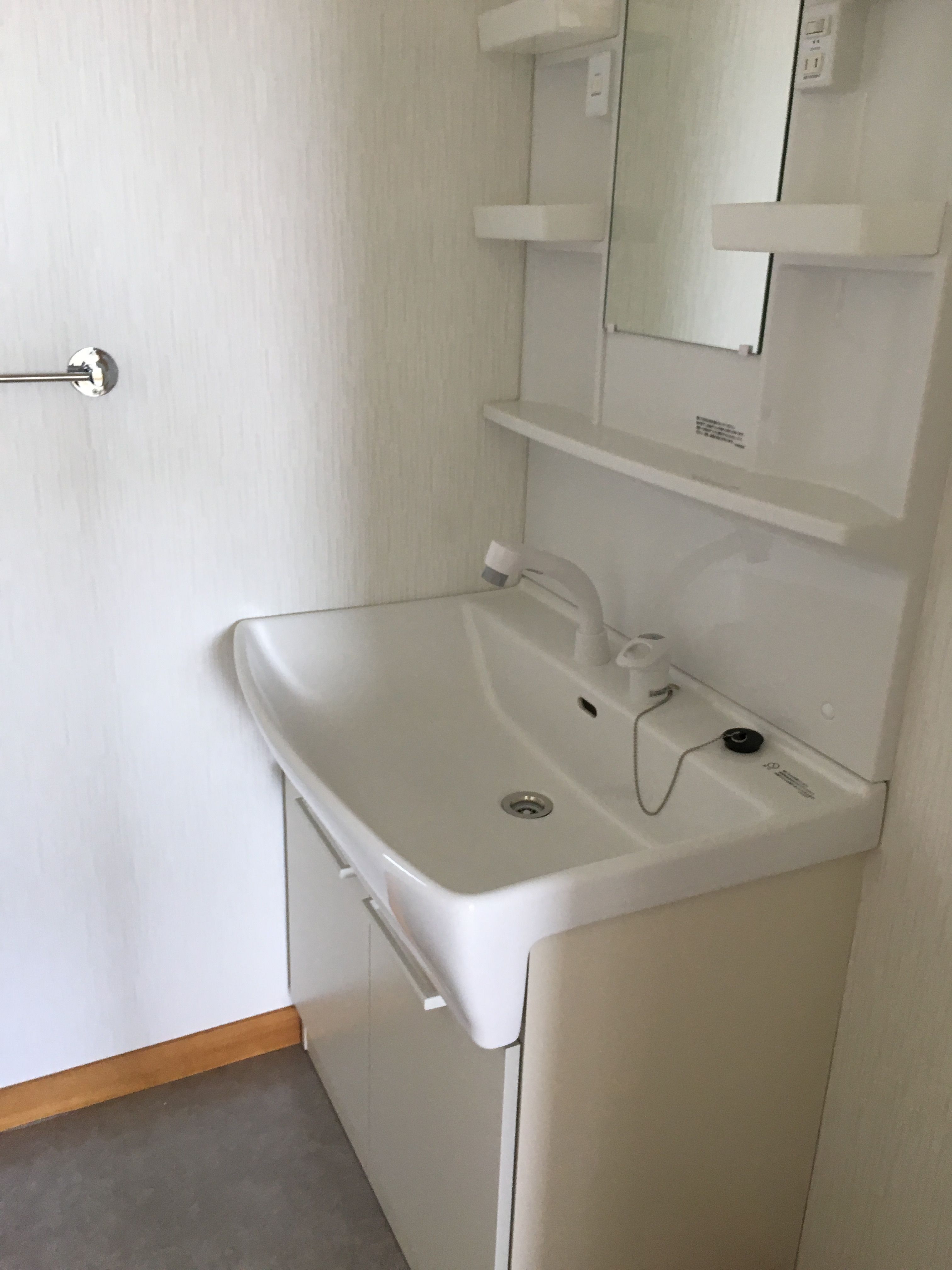 小さいお子さんがいたので、一般的な洗面台が撤去され、おむつ洗い用(ボウル?)になっていました。客付けには大きくマイナスですね。管理会社の女性社員さんには、すこぶる評判が悪かったようです。