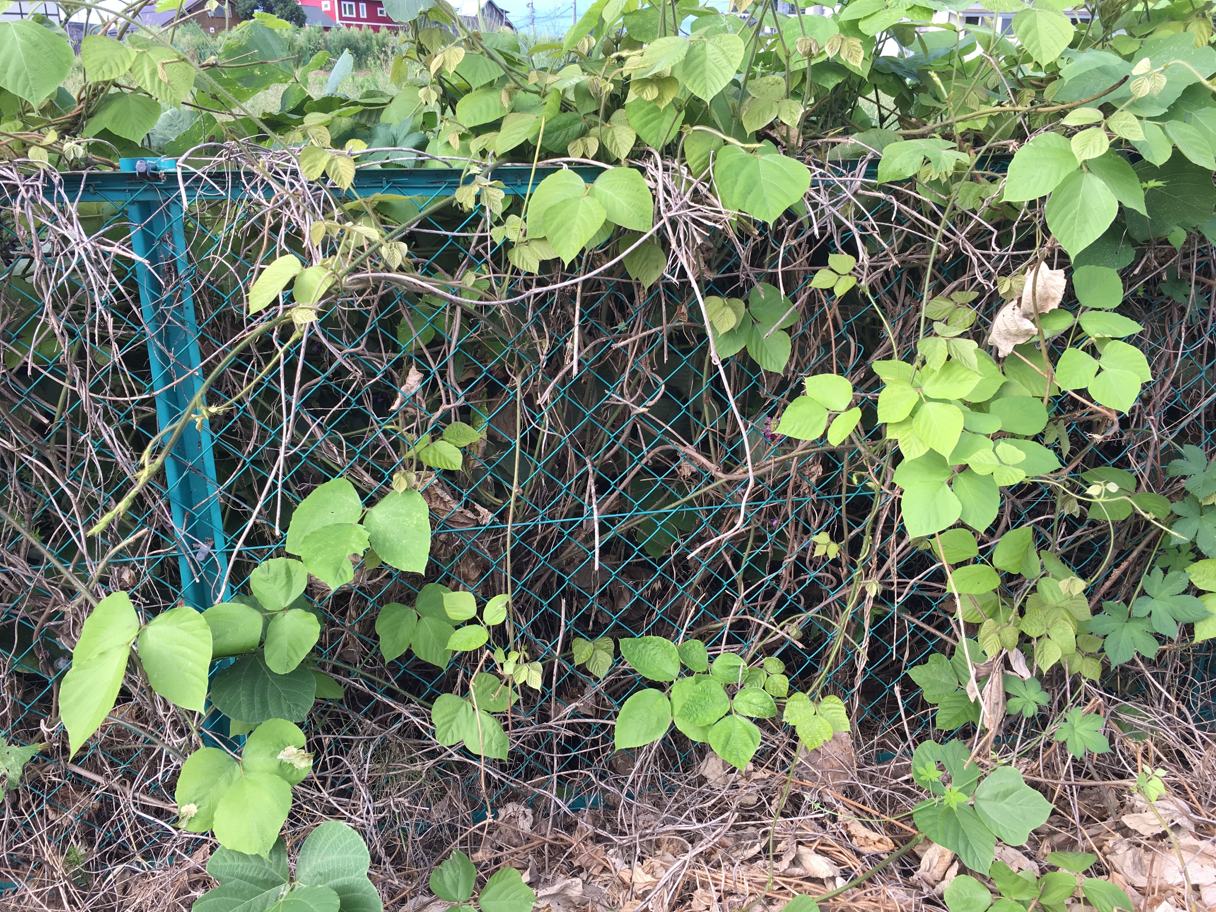 ・この草がフェンスを乗り越えて敷地内に伸びてくる。写真は刈払い機で草を刈った2、3日後です。