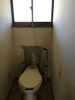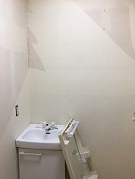 トイレのタンクも外してあります。タンクをはずしてクロスの施工をする業者さんも少ない気がします。