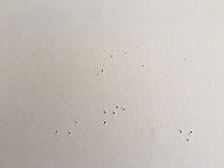 画びょうより太い、釘のようなものを刺してあったようです。このサイズの穴が、2部屋全部の壁にありました。