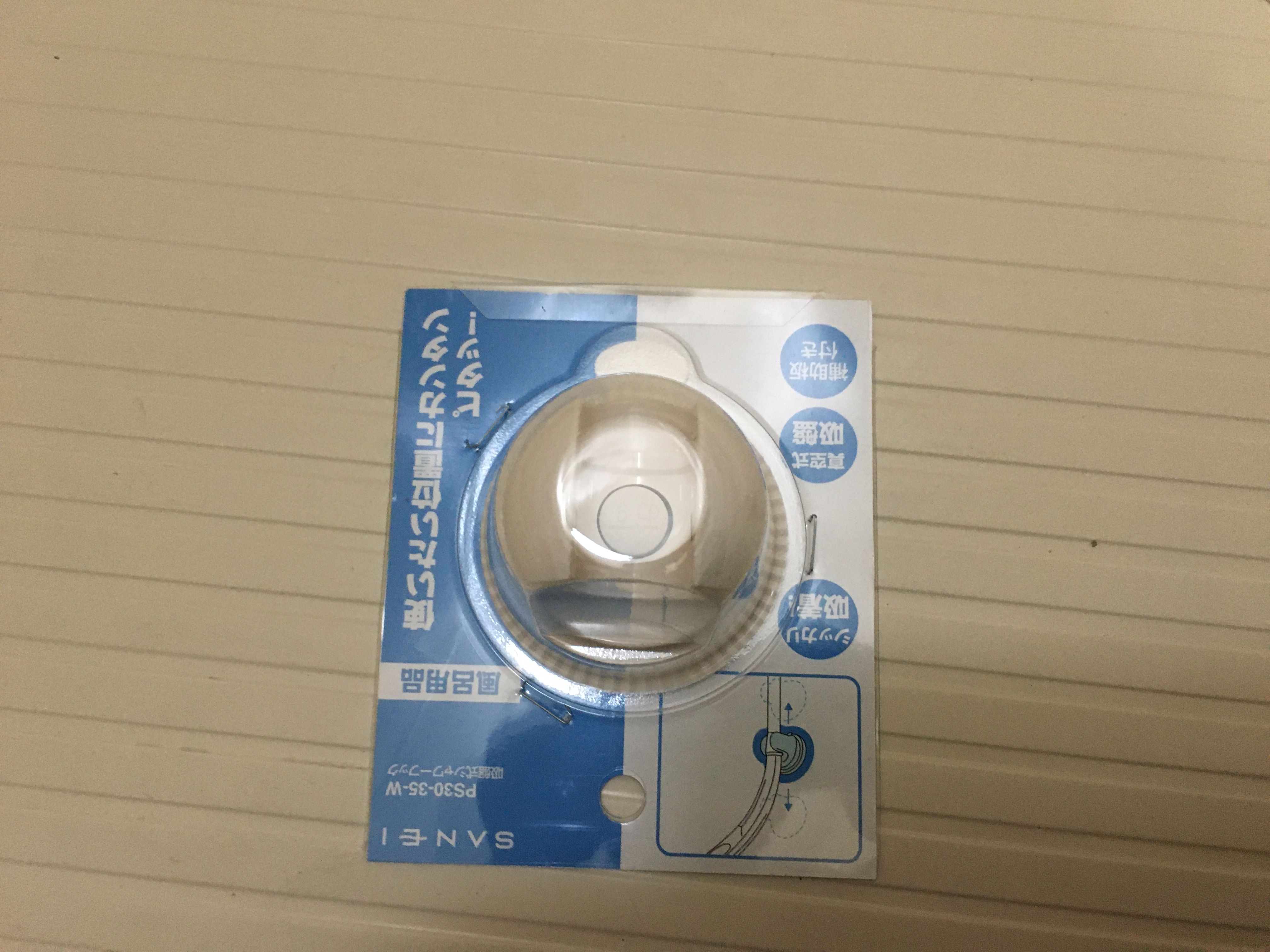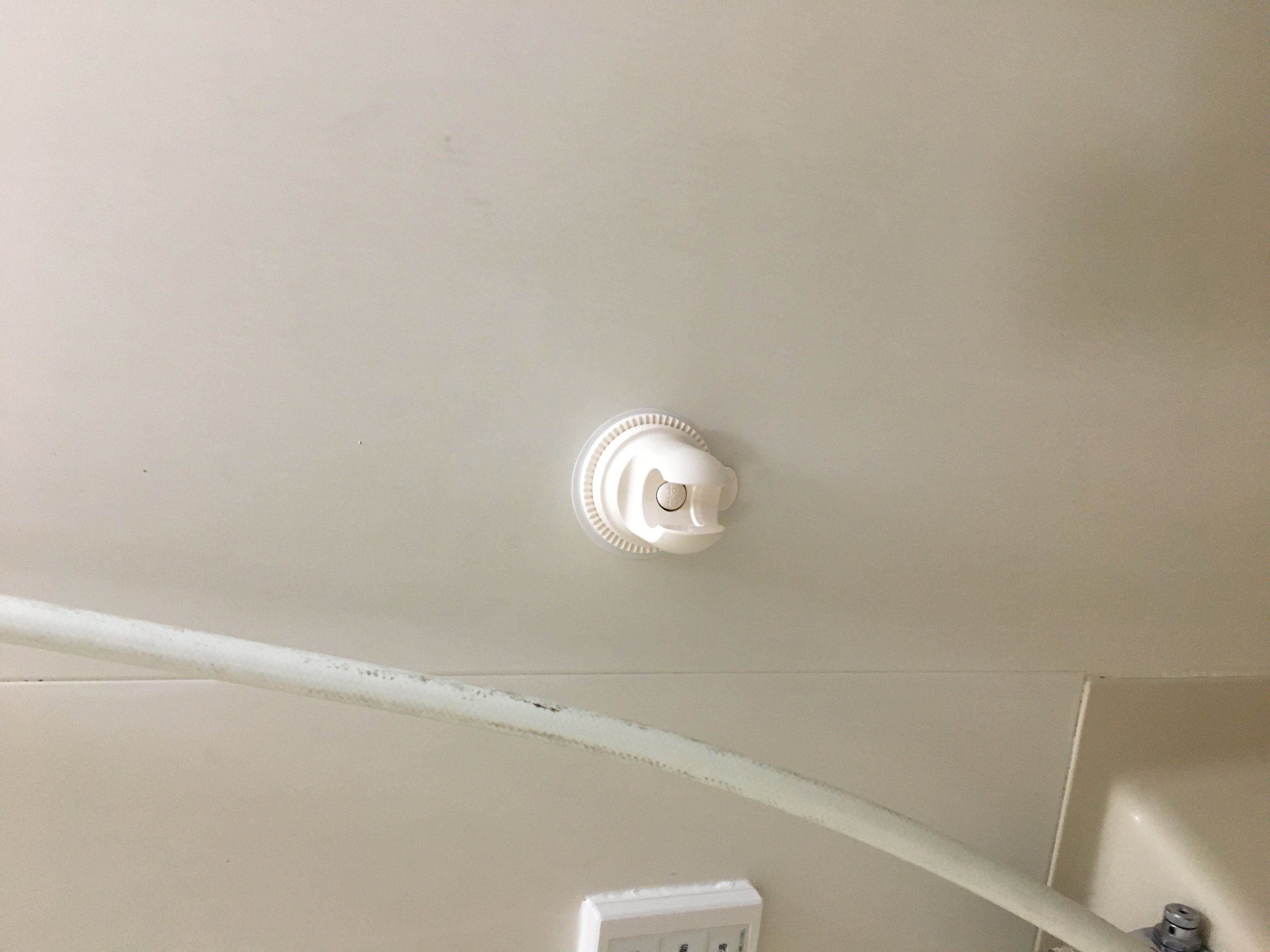SUさんが帰った次の日、「これではいかん。」と思い。写真のようなものを買ってきました。『吸盤式シャワーフック』というものです。1000円くらいです。写真反対ですね。白いコーキングでふさぐことも考えましたが吸盤にしました。